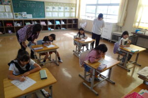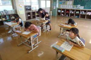 今日のテーマは、「赤・黄・緑の食べもののはたらきを知ろう」でした。最初に、食べ物が赤、黄、緑に分けられることを知ってから、今日の給食に入っている食品について、自分で赤黄緑に分けてみました。
