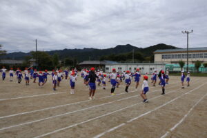1、2時間目に運動会の総練習として、開会式から閉会式まで、全体の流れを通して行いました。