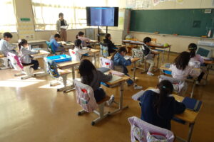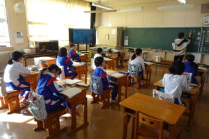 当番の子が前の黒板に書いていました。みんなもしっかり見ています。