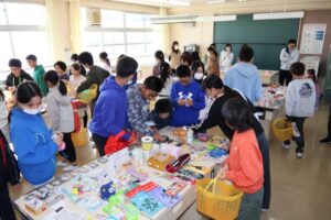 PTA安全・安心部のみなさんで企画・運営していただきました。低学年と高学年に分かれて買い物を楽しみました。子どもたちの楽しそうな笑顔がとても印象的でした。