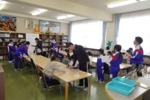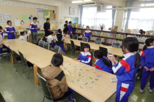 1~4年生の参加希望者が図書館に集まって楽しくかるたをしていました。