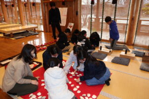 いつきのみや歴史体験館では、平安のお菓子「つばい餅」作りを体験しました。みんな上手に作っていました。おいしかったようです。