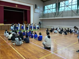 また、今日は「なかよし集会」が行われ、1年生との出会い、そして新しい「なかよし班」との出会いの場となりました。会場の準備から進行、交流遊び等、6年生が中心となって進めてくれました。